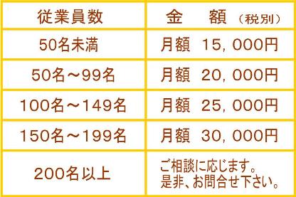 産業医の契約料金は、従業員数により下記のようになります。 |